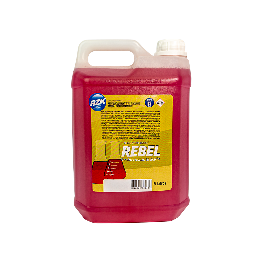 O rebel é um desincrustante ácido de uso profissional, formulado para remover incrustações e deposições minerais mesmo nas superfícies mais críticas. Com ação potente, ele dissolve sais, limo, cimento, ferrugem e outras sujeiras aderidas, trazendo eficiência e segurança para limpezas pesadas.
